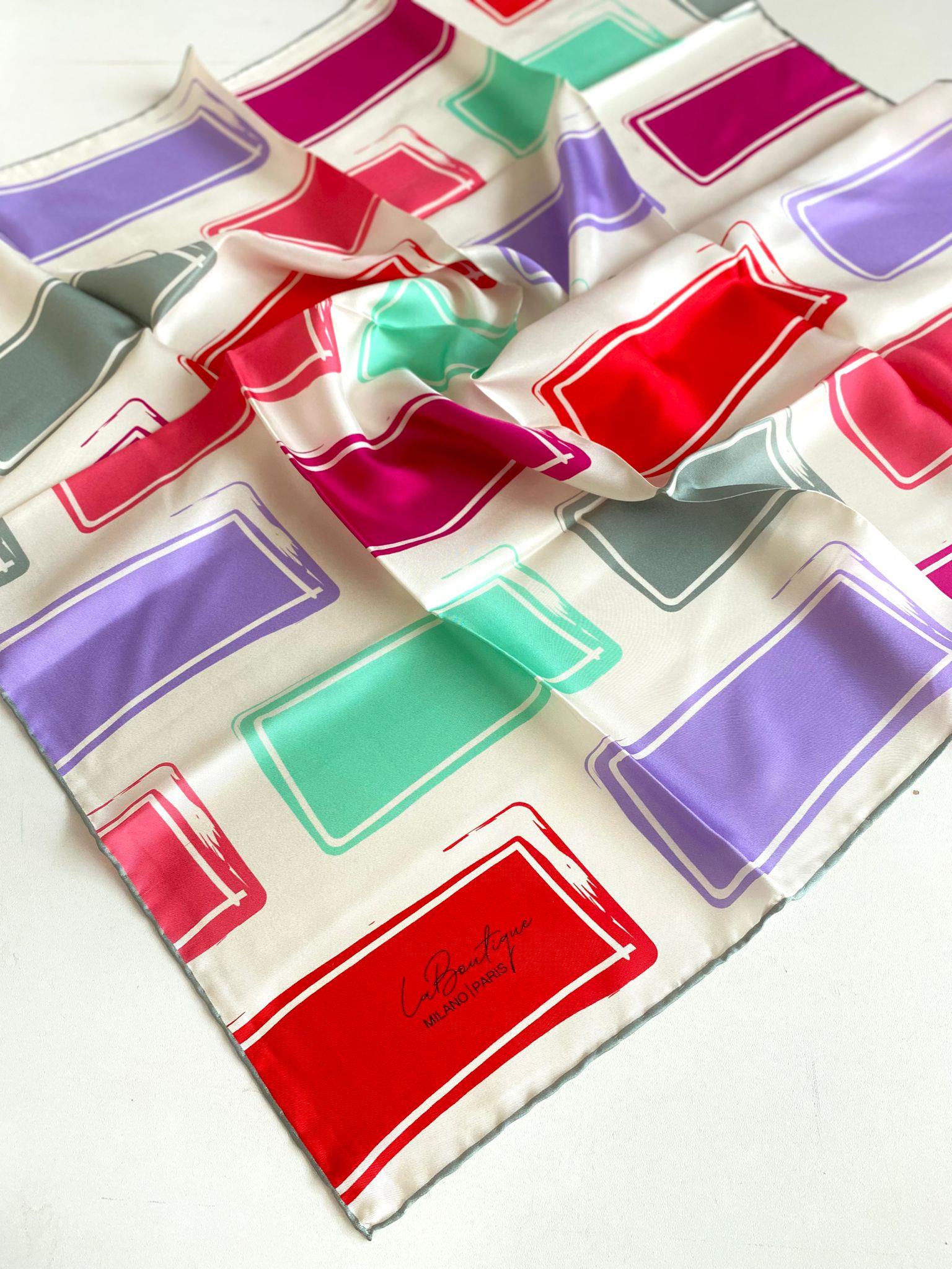 La Boutique Az Hatalı Tivil Saf İpek Eşarp 51064 Beyaz Karışık Desen (SYR51064)