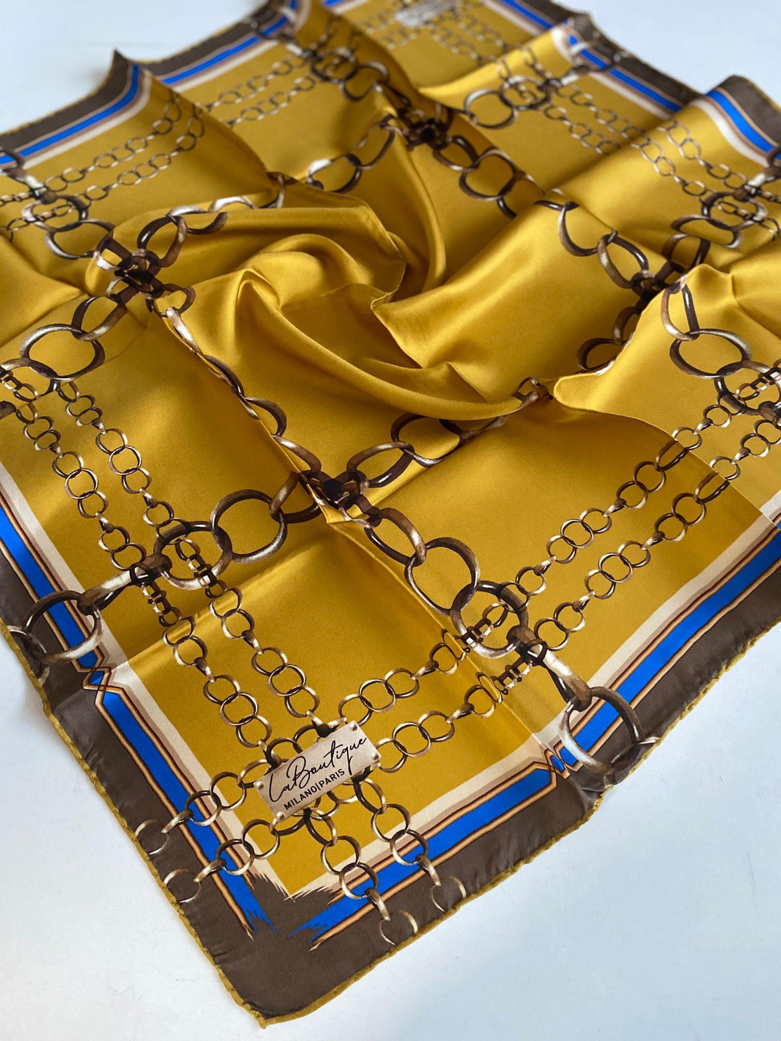 La Boutique Az Hatalı Tivil Saf İpek Eşarp 51540 Hardal Sarı Karışık Desen