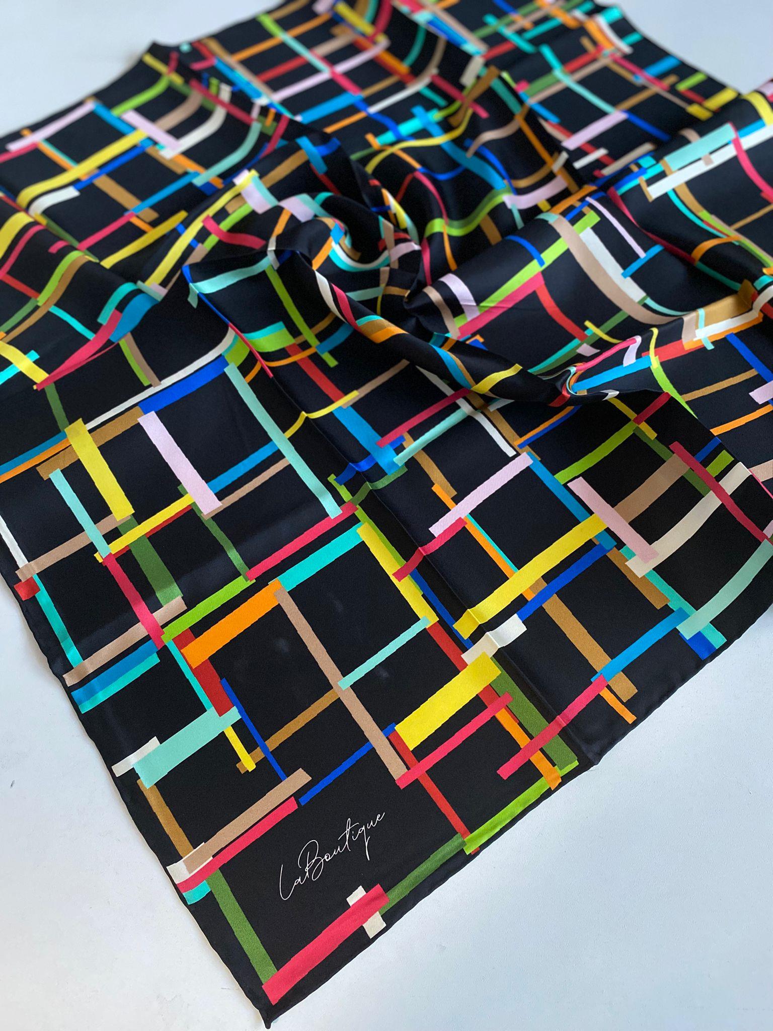 La Boutique Az Hatalı Tivil Saf İpek Eşarp 51542 Siyah Karışık Desen