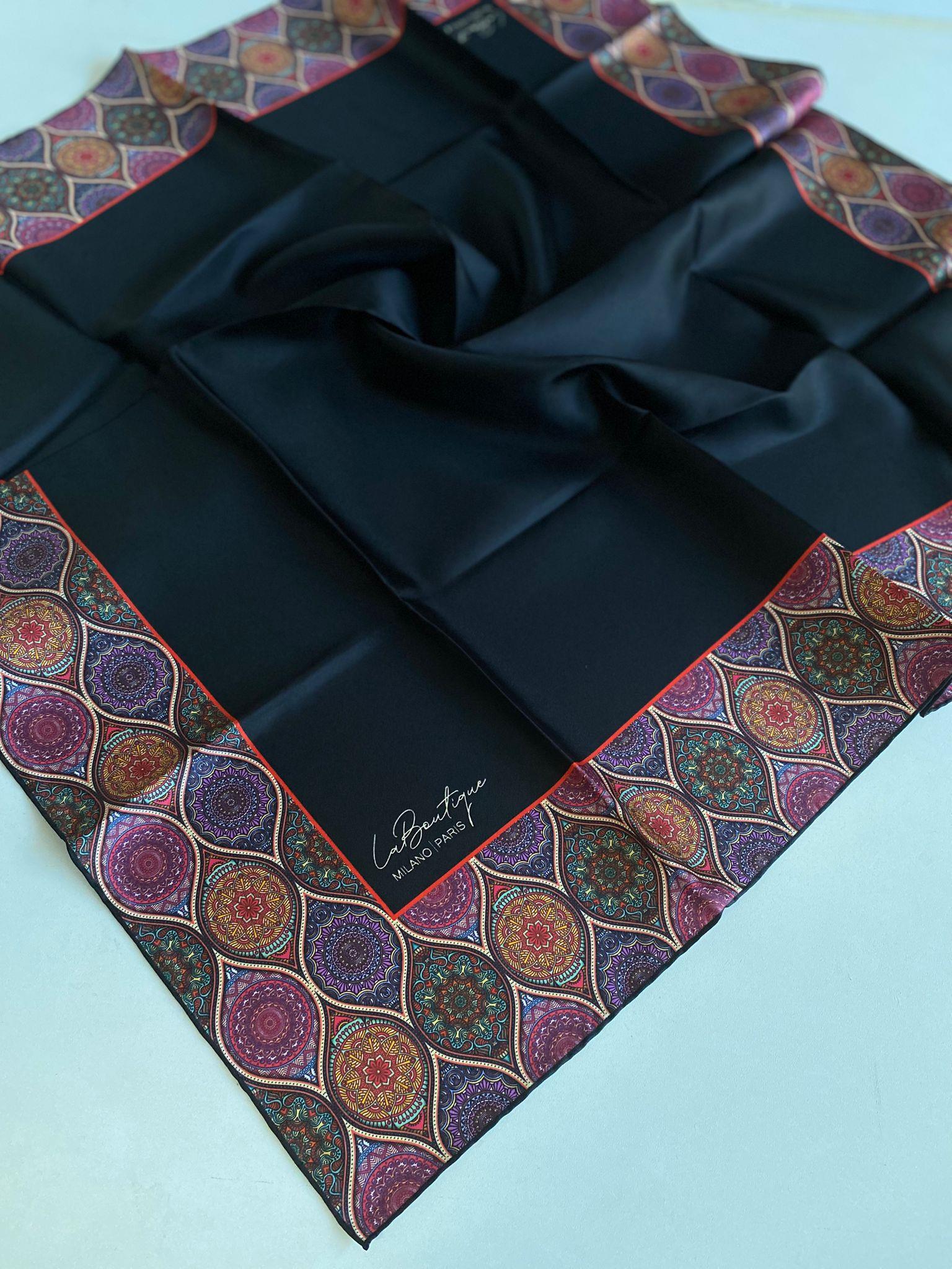 La Boutique Az Hatalı Tivil Saf İpek Eşarp 51544 Siyah Karışık Desen (SYR51544)