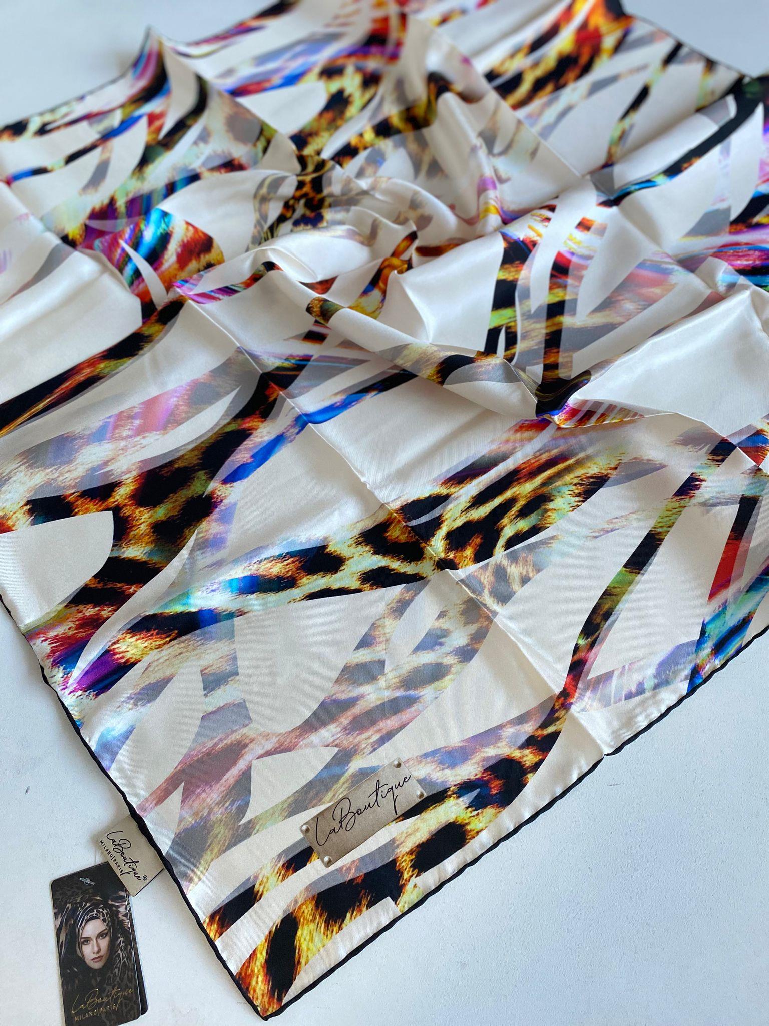 La Boutique Az Hatalı Tivil Saf İpek Eşarp 51550 Beyaz Karışık Desen (SYR51550)