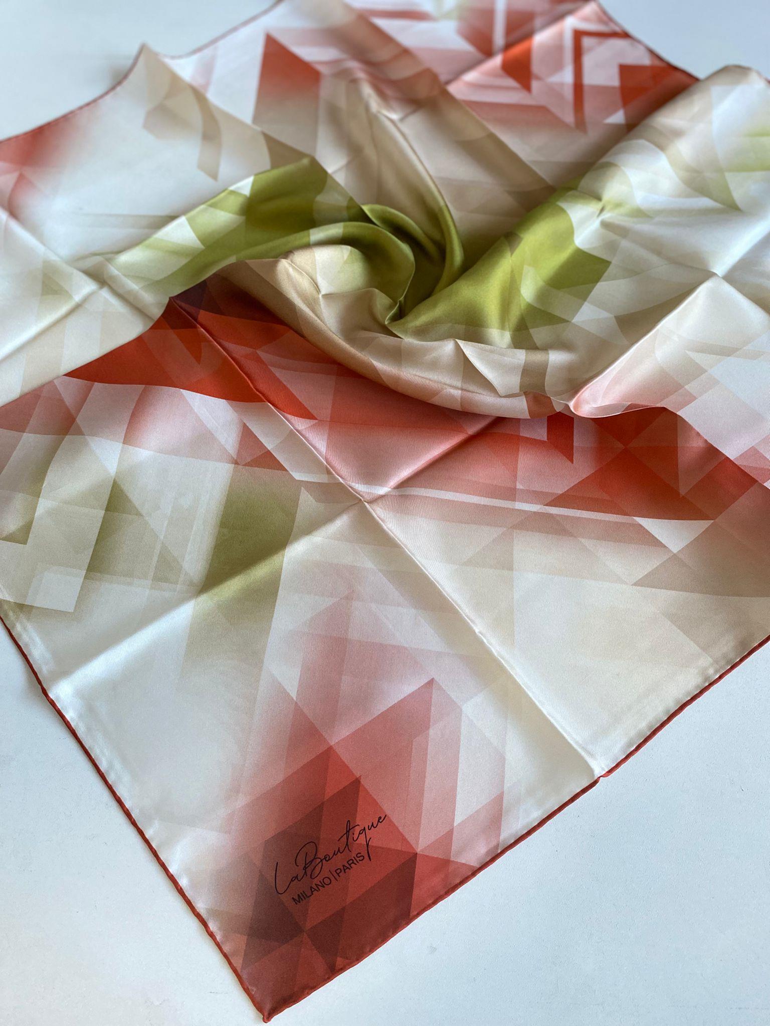 La Boutique Az Hatalı Tivil Saf İpek Eşarp 51563 Beyaz Karışık Desen