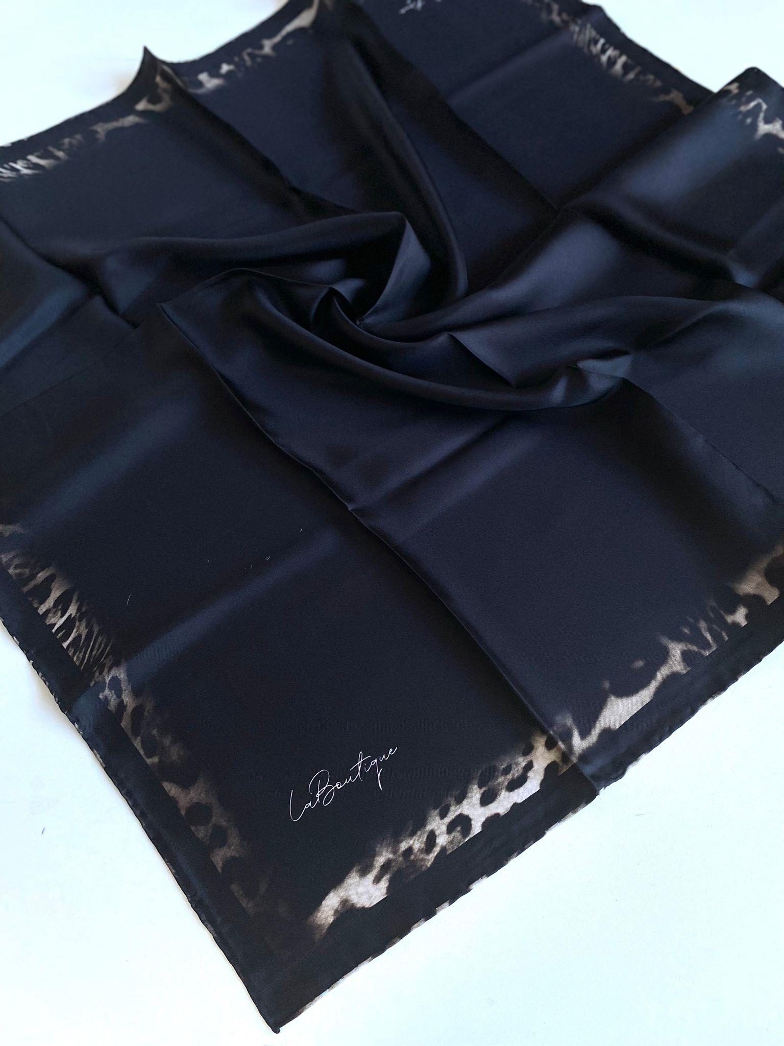 La Boutique Az Hatalı Tivil Saf İpek Eşarp 51565 Siyah Karışık Desen