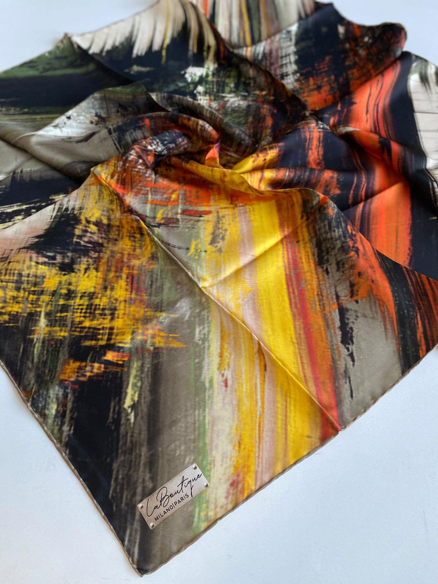 La Boutique Az Hatalı Tivil Saf İpek Eşarp 51568 Siyah Karışık Desen