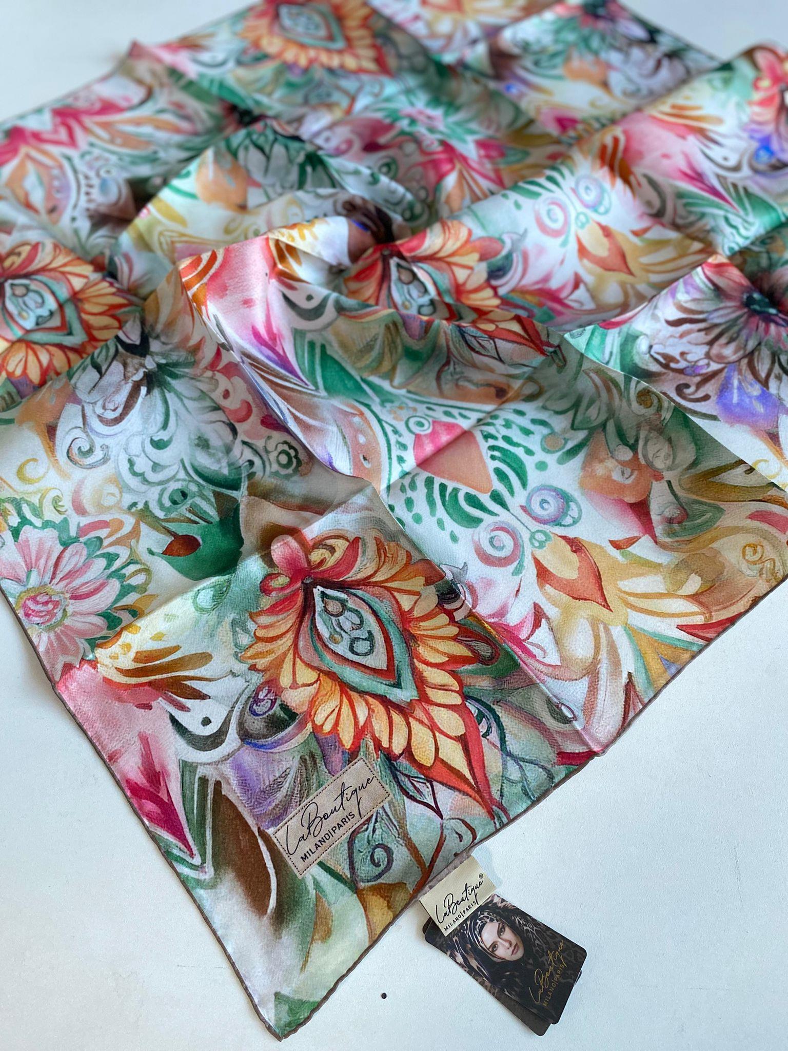 La Boutique Az Hatalı Tivil Saf İpek Eşarp 51573 Pembe Karışık Desen