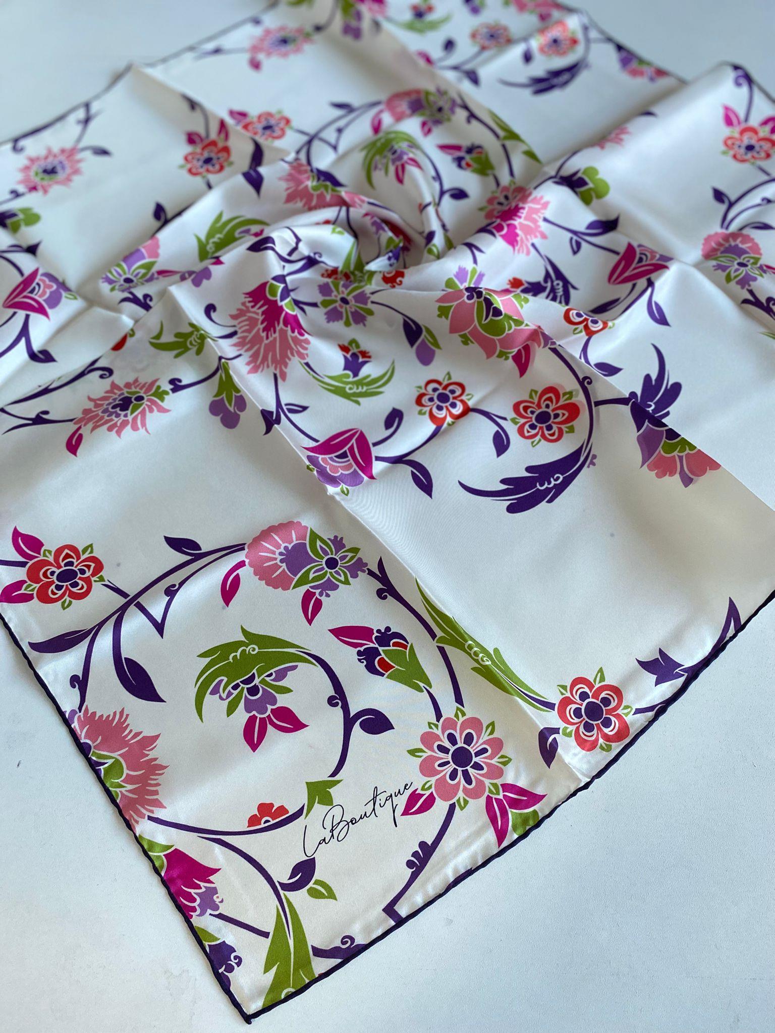 La Boutique Az Hatalı Tivil Saf İpek Eşarp 51575 Beyaz Karışık Desen (SYR51575)