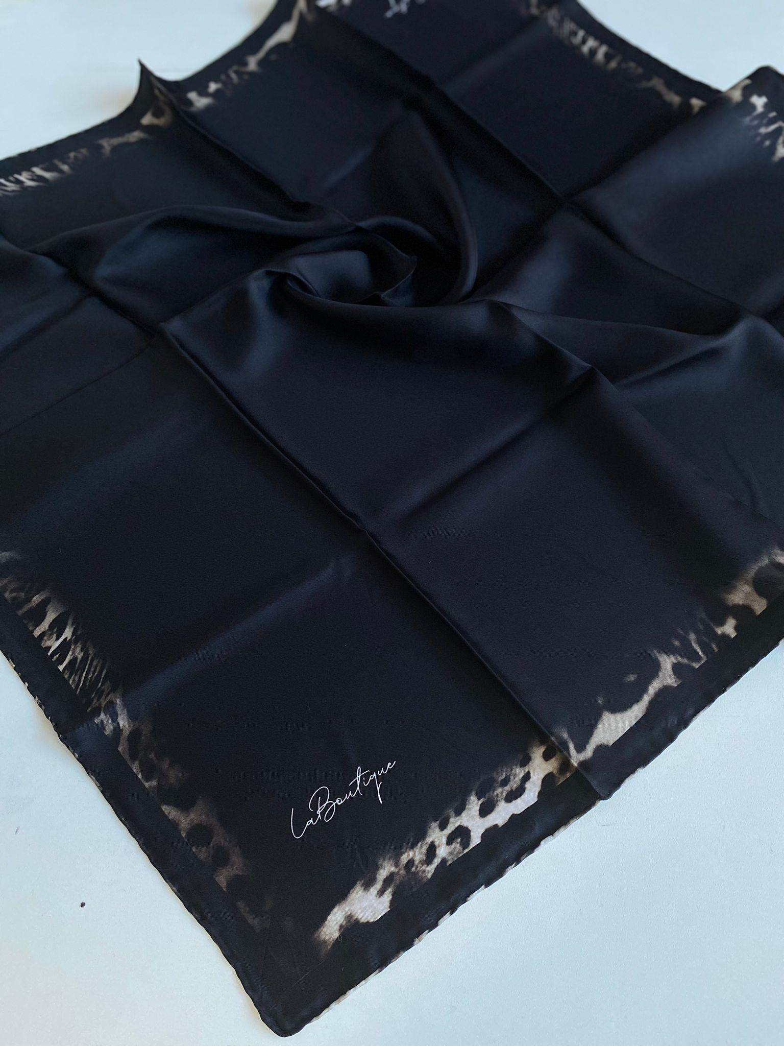 La Boutique Az Hatalı Tivil Saf İpek Eşarp 51577 Siyah Karışık Desen (SYR51577)