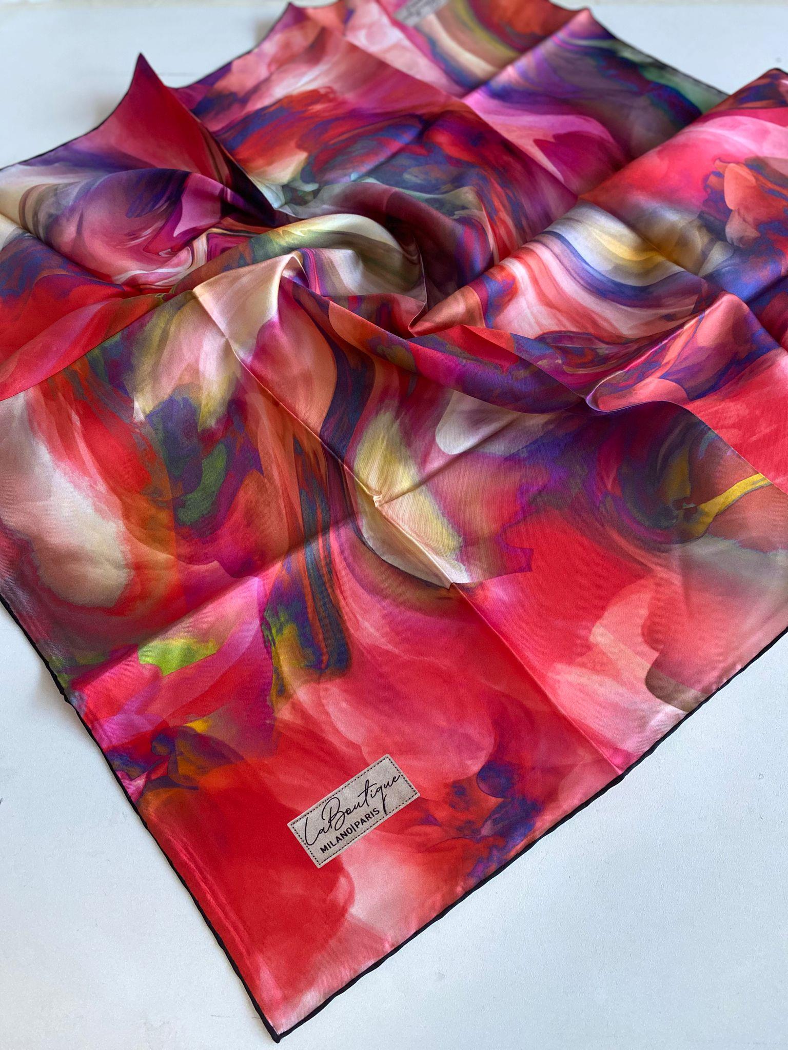 La Boutique Az Hatalı Tivil Saf İpek Eşarp 51601 Kırmızı Karışık Desen