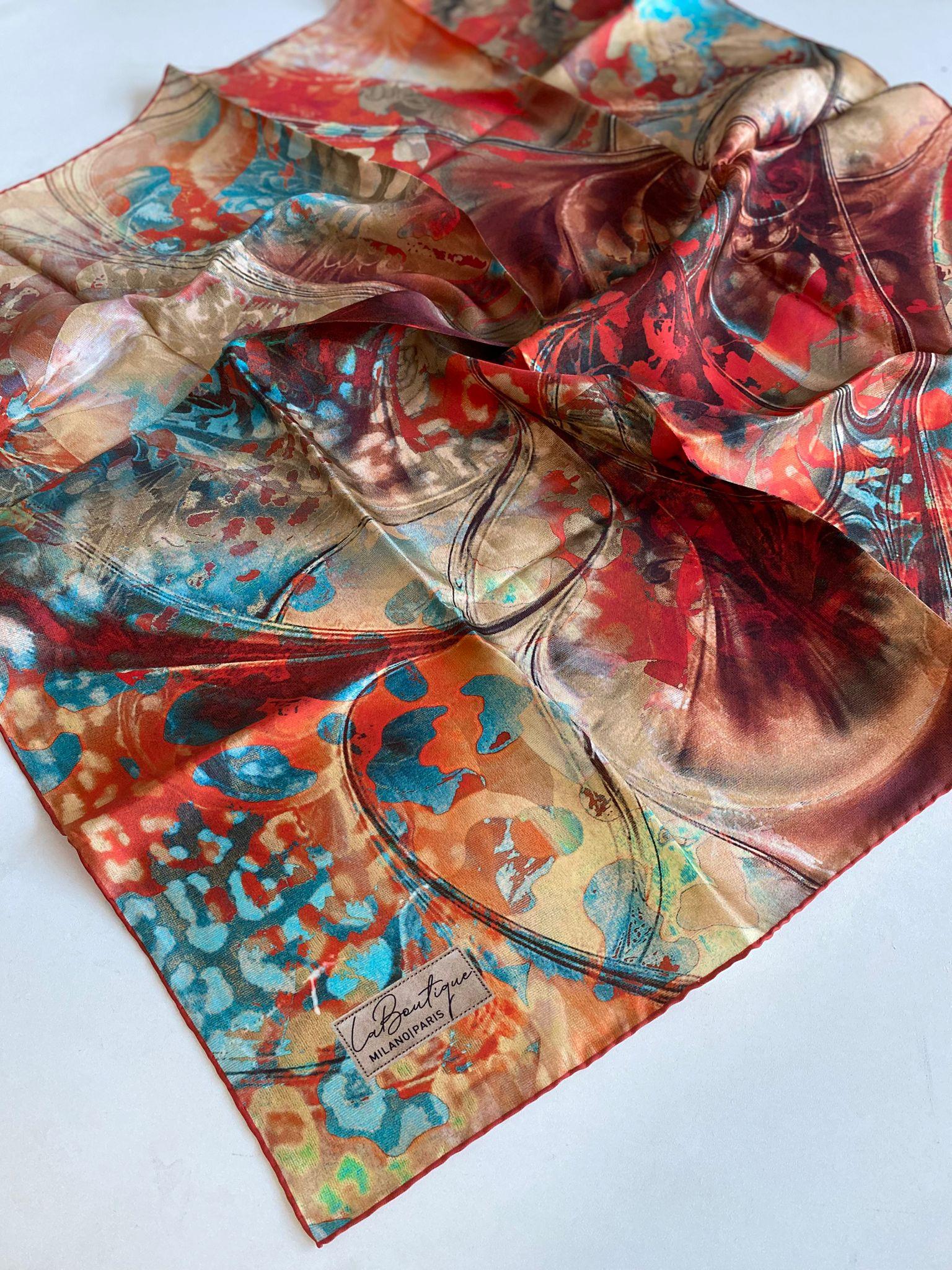 La Boutique Az Hatalı Tivil Saf İpek Eşarp 51612 Turuncu Karışık Desen