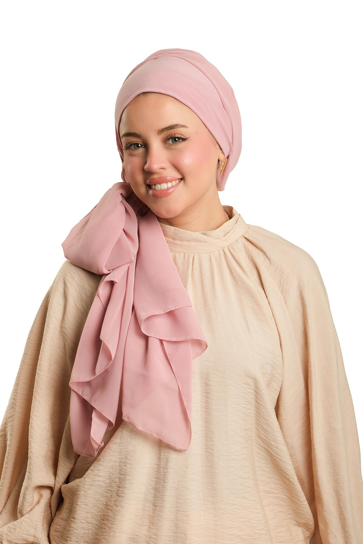 Pudra Pratik Hazır Geçmeli Bone Şal Şifon Düz 2506_06 (2506_06)