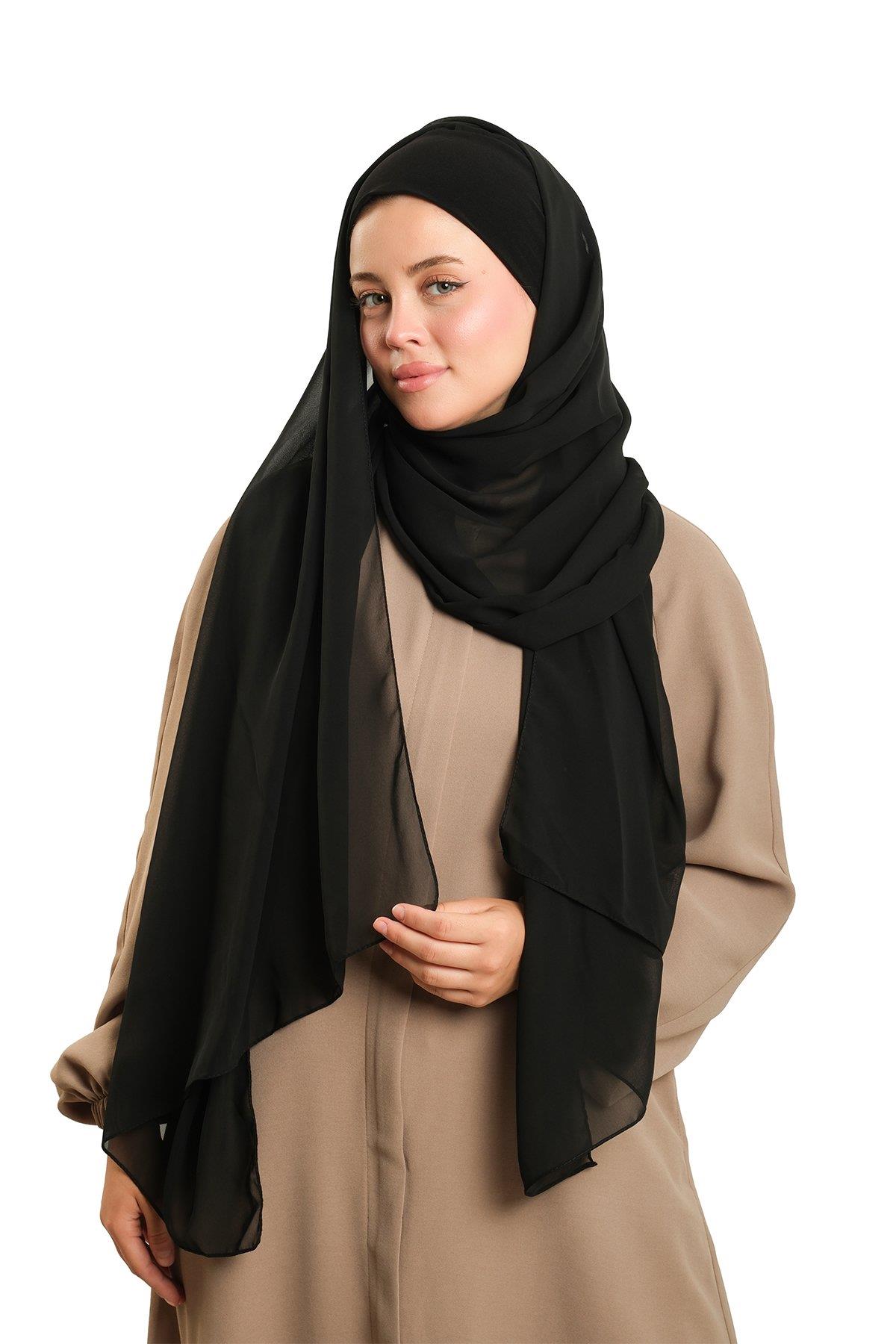 Siyah Pratik Hazır Geçmeli Bone Şal Şifon Düz 2506_01 (2506_01)