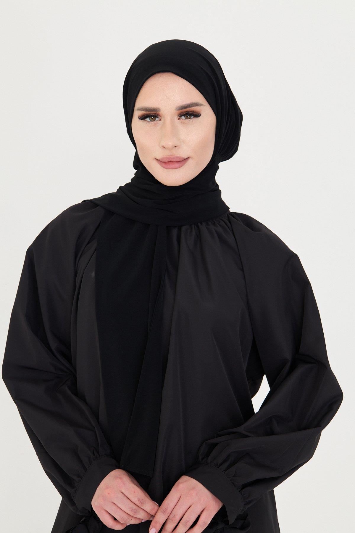 Siyah Pratik Hazır Geçmeli Tesettür Bone Sandy Boyunluklu Çıtçıtlı 2505_01