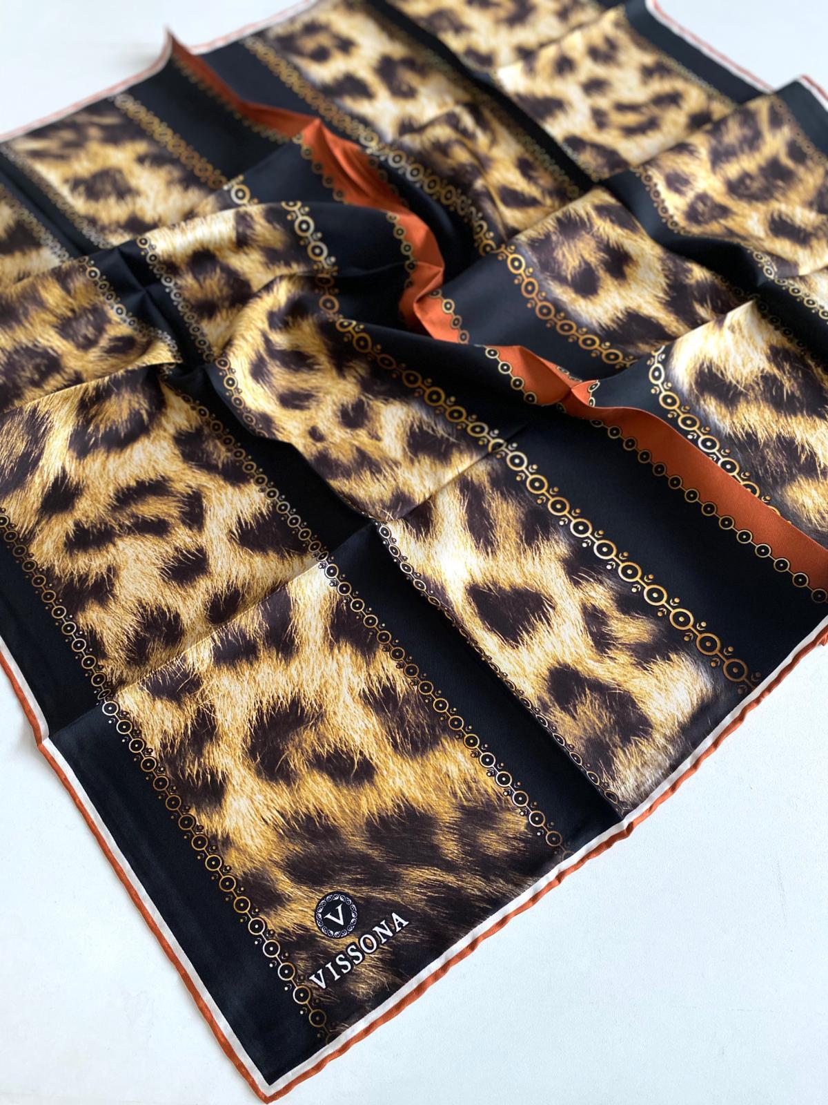 Vissona Tivil İpek Eşarp 17065 - 51155 Siyah Turuncu Leopar Desen (SYR51155)