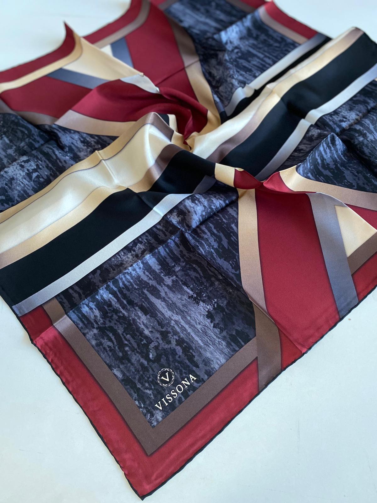 Hem günlük kullanıma hem de özel davetlere uyum sağlayan Vissona ipek eşarplar, modern çizgilerle şekillenen desenleriyle gardırobunuzun vazgeçilmez parçası olacak.