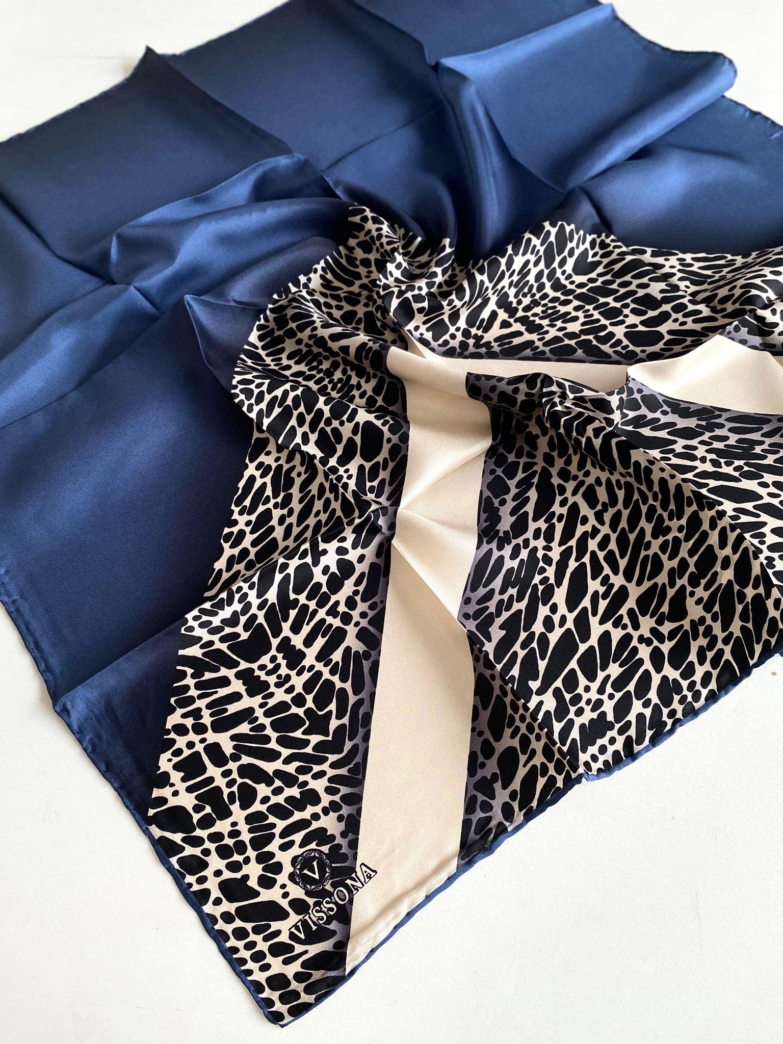 Vissona Tivil İpek Eşarp 7328 - 0031 Lacivert  Krem Geometrik Desen